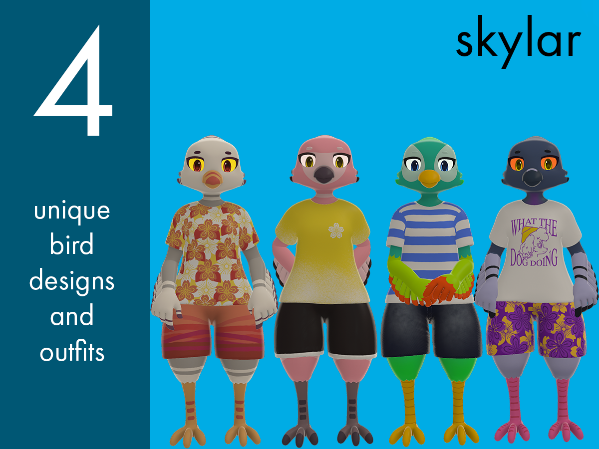 Skylar is a furry style bird avatar designed to be optimized, customizable, and expressive!